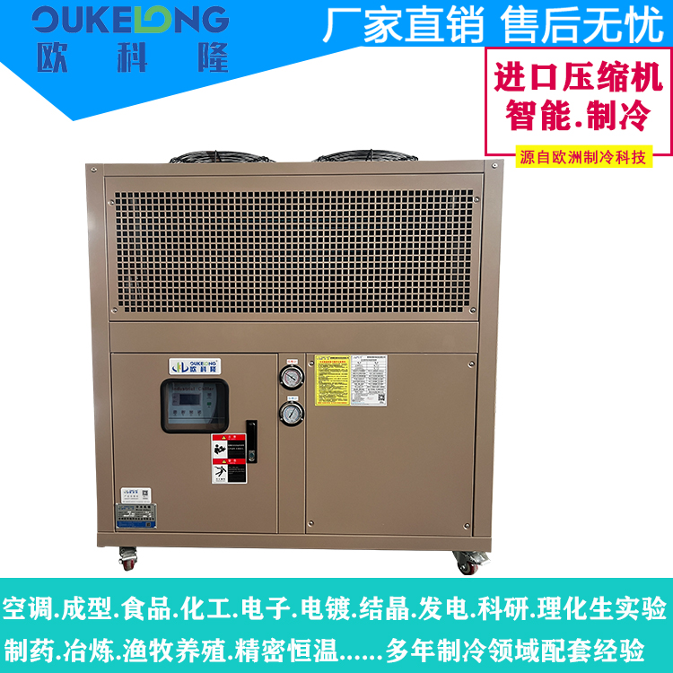 深圳歐科隆制冷自主設計研發(fā)生產(chǎn)的15HP風冷式冷水機是一款中高功率工業(yè)制冷設備,專為中型生產(chǎn)線和集中冷卻需求設計。該機型采用高效風冷散熱技術(shù),免除冷卻塔配置,兼具大冷量輸出與便捷安裝特性,是制造業(yè)升級的理想溫控解決方案。