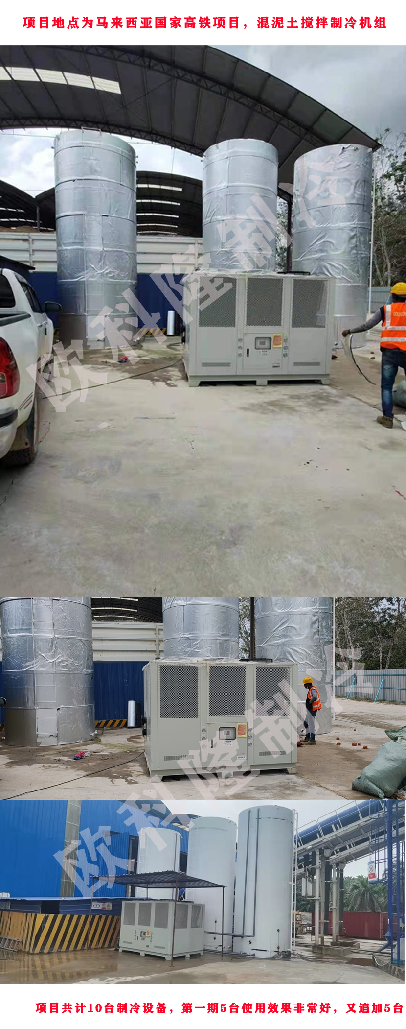 下面的案例是馬來西亞西海岸馬高鐵項(xiàng)目混泥土攪拌專用冷水機(jī)組項(xiàng)目。據(jù)了解該項(xiàng)目為中國交建集團(tuán)承接,項(xiàng)目品質(zhì)要求極高,